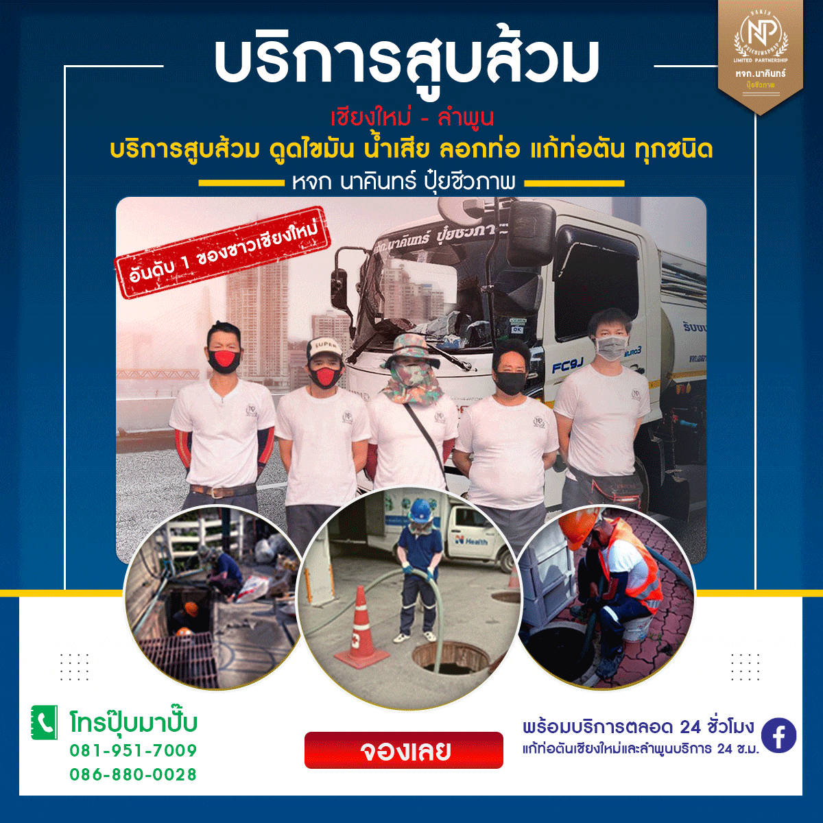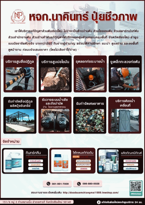 หจก.นาคินทร์ ปุ๋ยชีวภาพ ให้บริการแก้ปัญหาท่อตันทุกชนิด ไม่ว่าจะเป็น ท่อตันจากไขมัน ร้านอาหาร น้ำเน่าเสีย จากทางน้ำไม่ไป เกิดไขมันอุดตัน แก้ด้วยการ สูบไขมัน ล้างระบบทางน้ำ และเติมจุลินทรีย์ ดับกลิ่น ย่อยสลายไขมัน แก้ส้วมเต็ม ส้วมตัน ดูดส้วมเชียงใหม่ ดูดส้วมลำพูน ห้องน้ำมีกลิ่น ส้วมราดไม่ลง มีฟองอากาศ ชักโครกตัน กดไม่ลง น้ำเสีย น้ำทิ้ง เกิดจากไขมันอุดตันในท่อระบายน้ำ สัญญาณเตือน !! ส้วมเต็ม ท่อตัน โดยที่คุณไม่รู้ตัว....